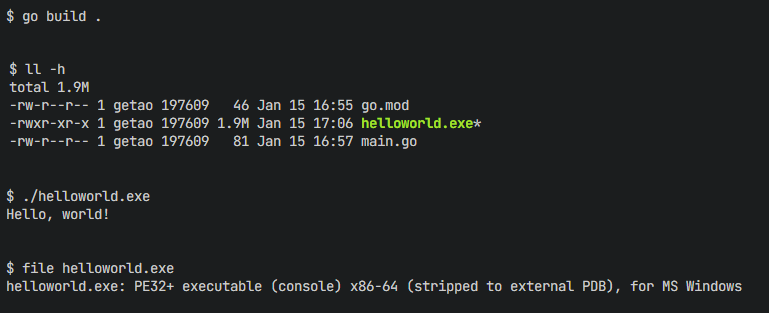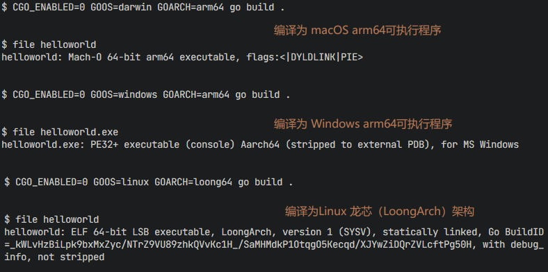 Go 编译程序可以通过环境变量的方式来切换目标平台。本文使用的是 Git Bash,所以可以直接在命令前面添加环境变量。