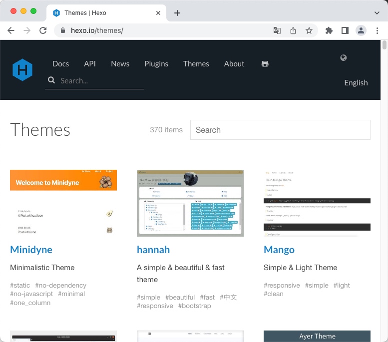 到这里我们就完成了最基本的博客搭建、文章编写。当然,我们还可以对其进行个性化,比如更换主题什么的。在官网的 Themes 栏目下也有许许多多优质的主题推荐。