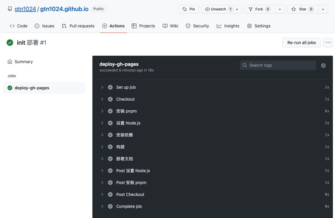 push 到 GitHub 后,GitHub Actions 将会自动启动构建,如图为构建成功的截图