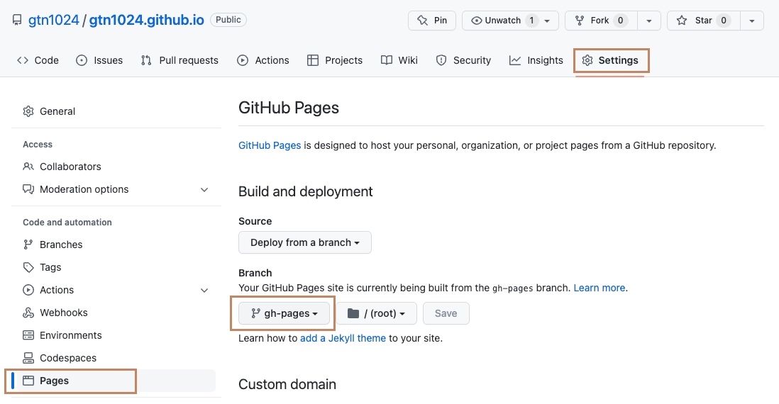 最后,我们将 GitHub Pages 分支设置为 gh-pages 即可。