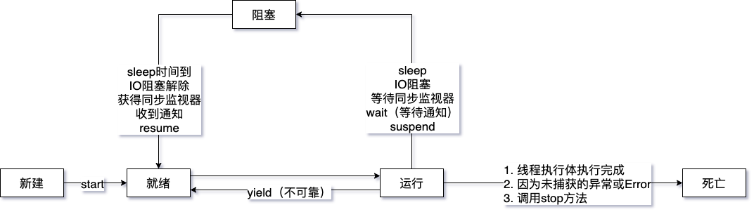 | 新建(new) | 创建Thread类实例后,线程对象只是一个普通的 Java 对象,并不表现任何动态特征 |