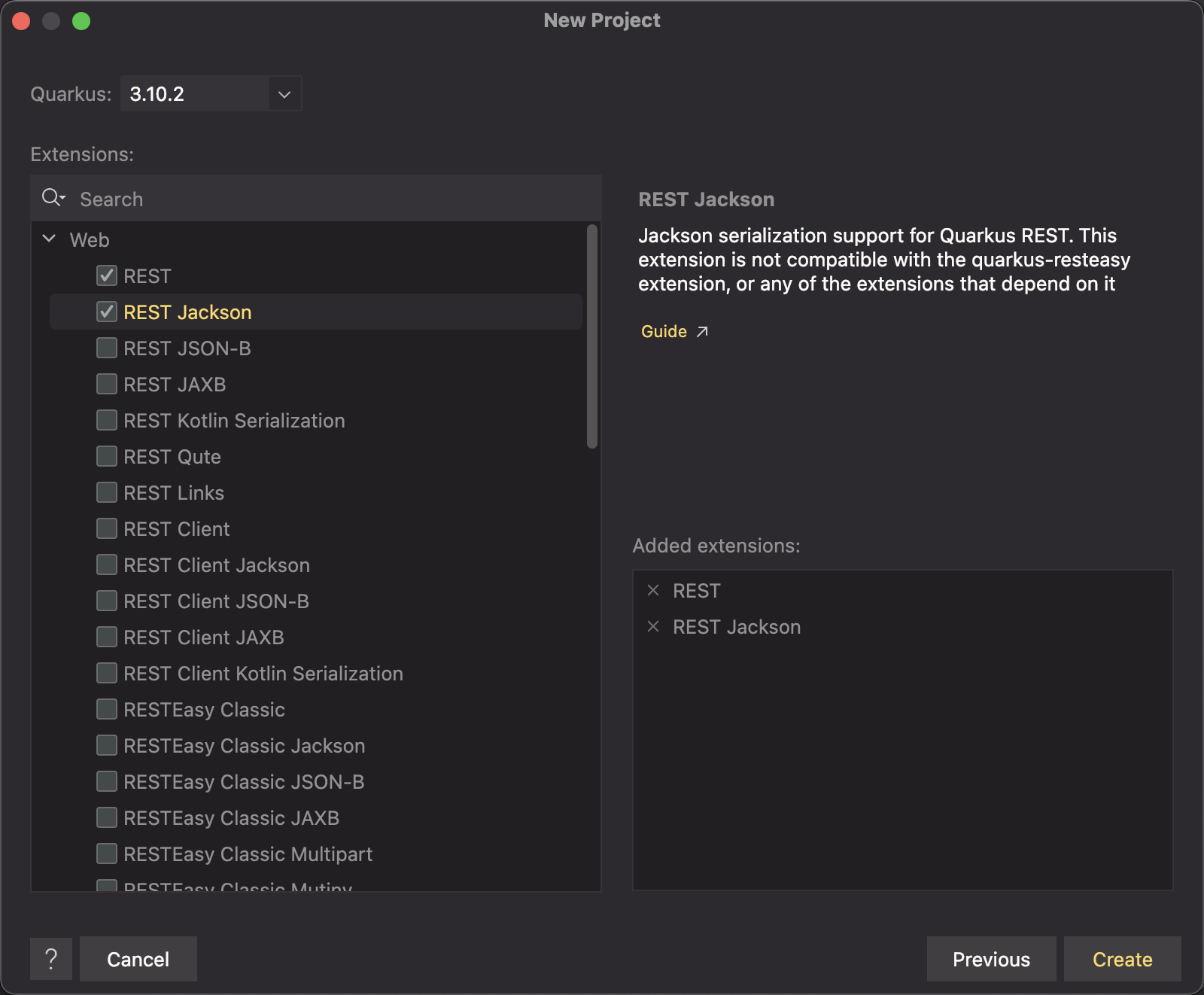 为了便于演示,我们使用 Quarkus REST 来创建 JAX-RS 服务。