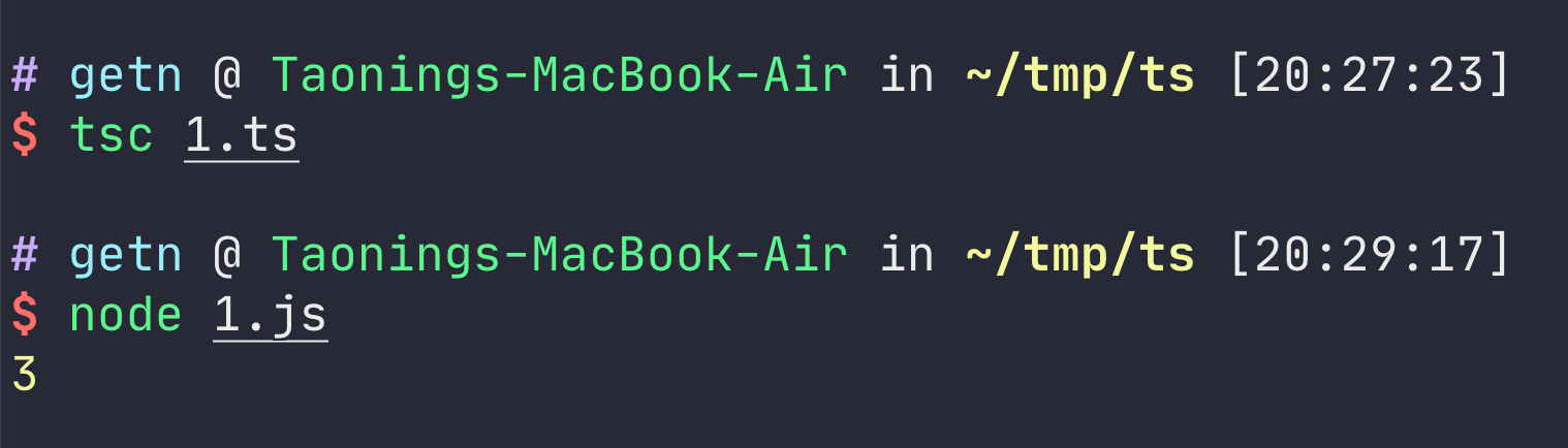 安装后就可以使用 ts-node 命令直接运行 TS 代码
