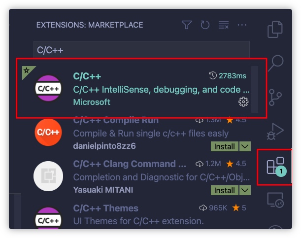 打开 VSCode 后,点击扩展(Extensions)图标,依次安装 C/C++ 扩展 、 Code Runner 扩展。如果看英文不顺眼的话,可以另外安装 Chinese (Simplified) Language Pack for Visual Studio Code 中文语言包。