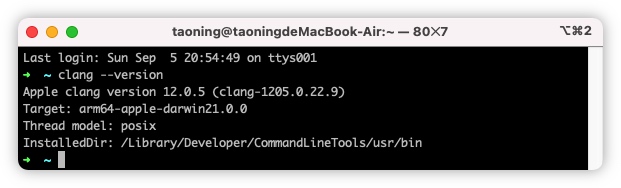如果没有安装,输入xcode-select --install安装Clang编译器。